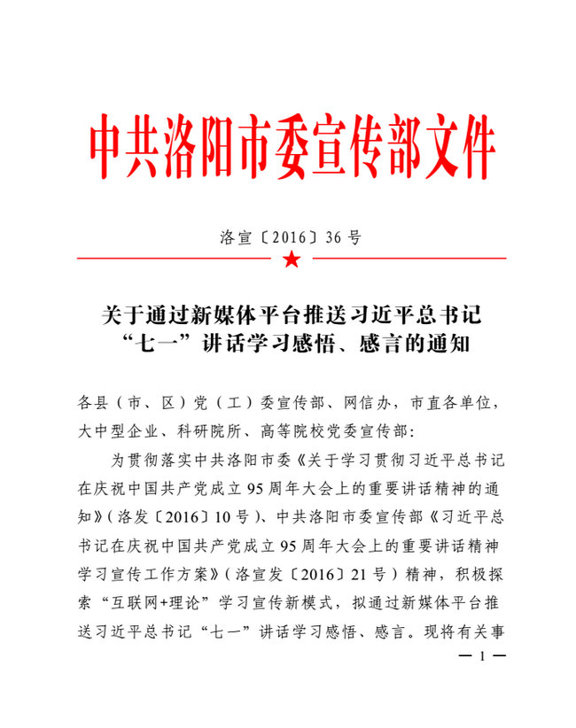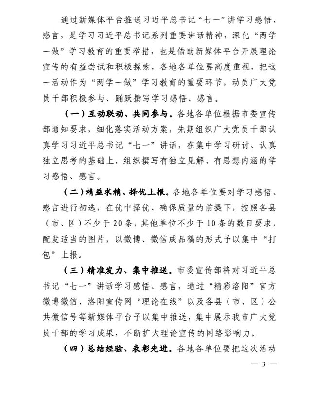 原标题:关于通过新媒体平台推送习近平总书记“七一”讲话学习感悟、感言的通知